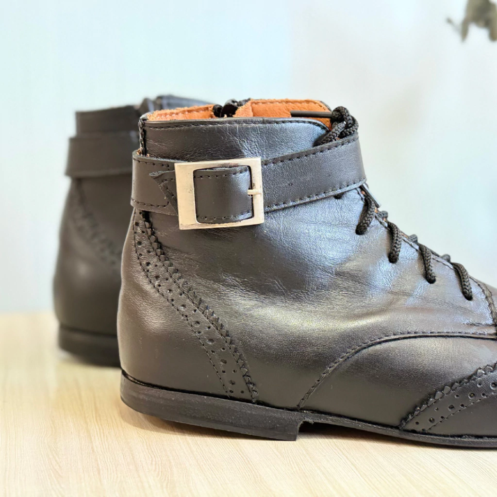 Este borcego acordonado es la mezcla justa entre carácter y diseño: urbano, picado y con una hebilla que lo convierte en algo más que un básico.