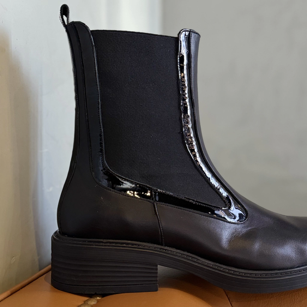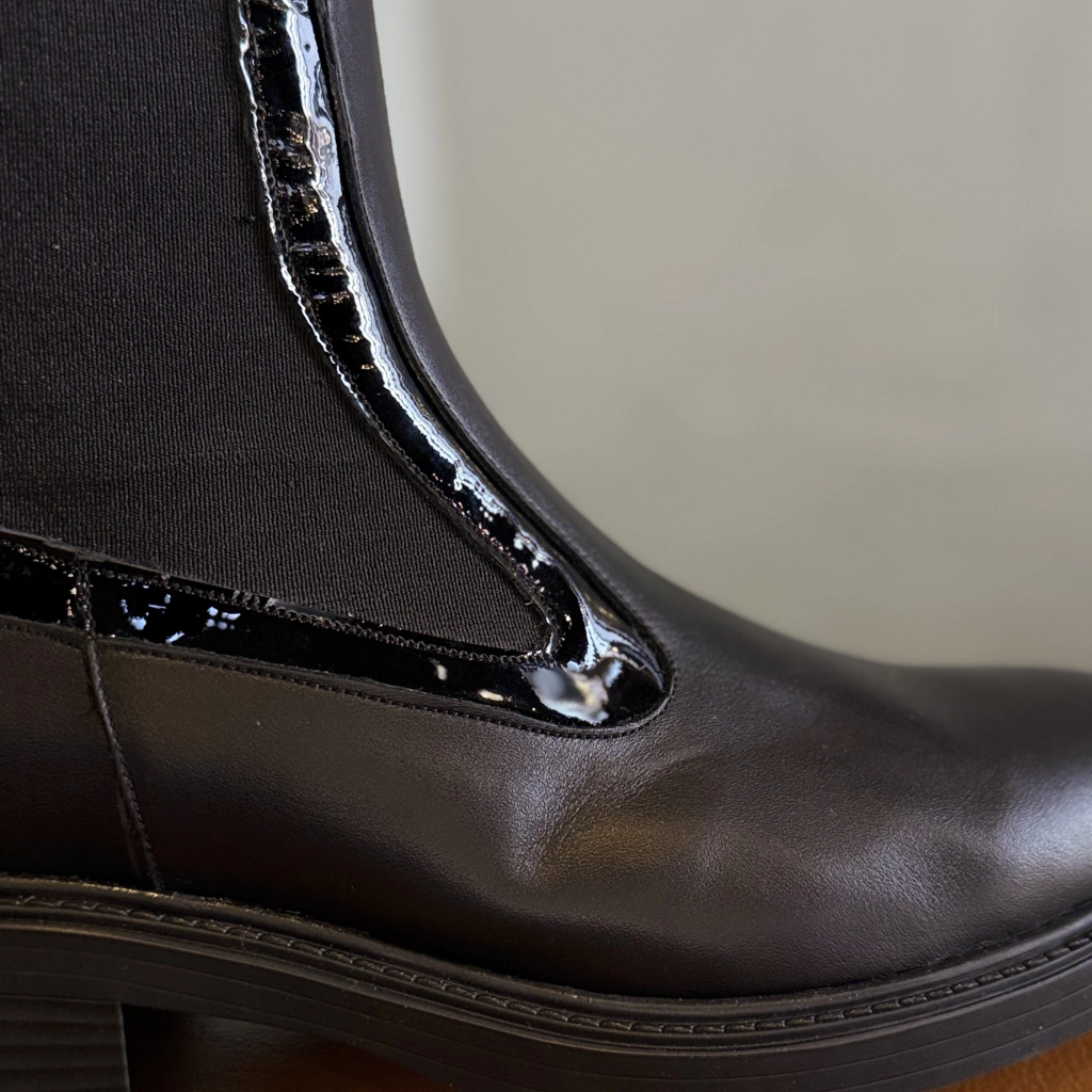 • Material: cuero 100% vacuno y detalles en charol o cabretilla.