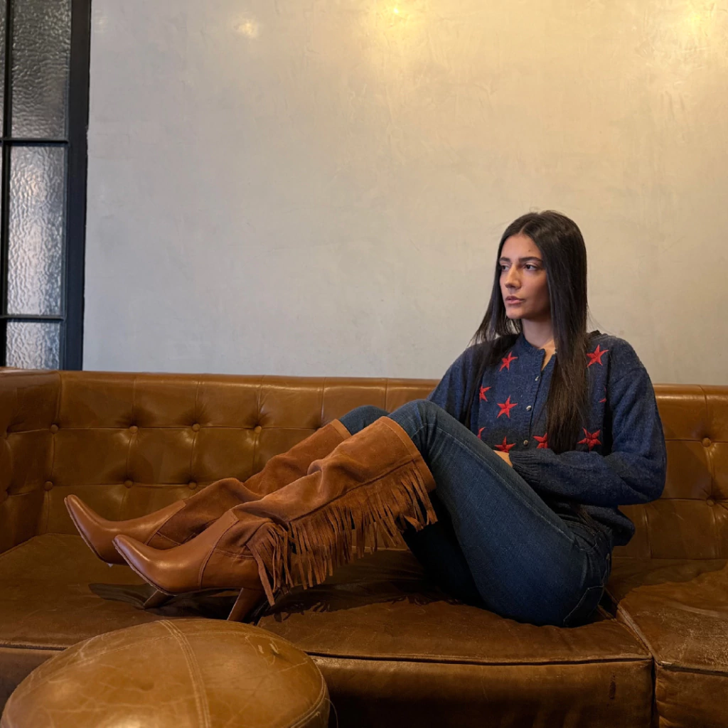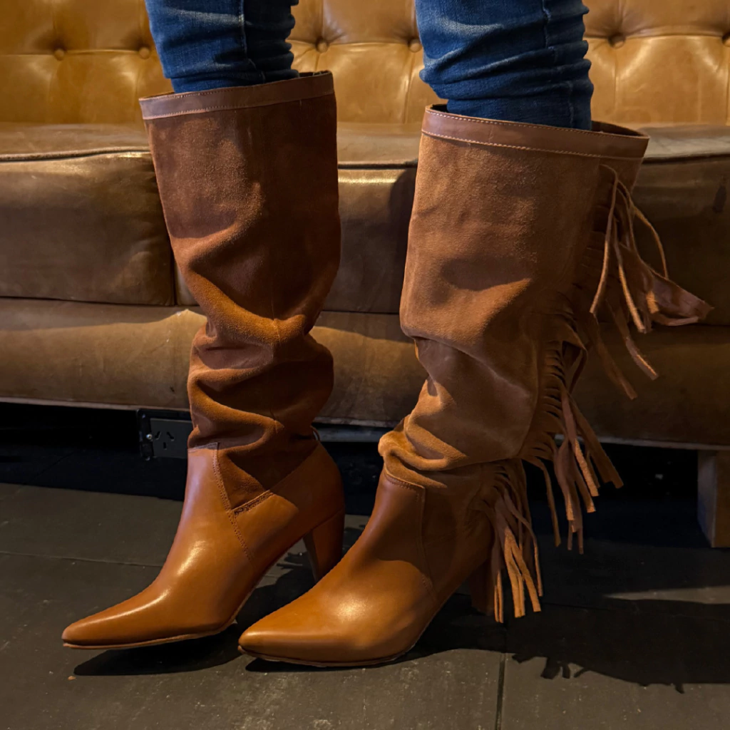 Un toque de movimiento, mucha actitud. Barcelona es una bota que pisa fuerte sin necesidad de gritar. Con flecos en un solo lateral, aporta ese detalle inesperado que hace la diferencia. Es ideal para quienes buscan tendencia, pero con un giro canchero y personal. No es una más: es la que suma estilo sin esfuerzo.