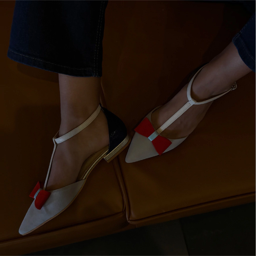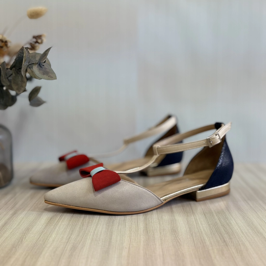 Si buscás la ligereza de una chata, Elizabeth puede ser para vos. Un diseño que juega con texturas, combina colores sutiles y se corona con un moño protagonista que la hace única.