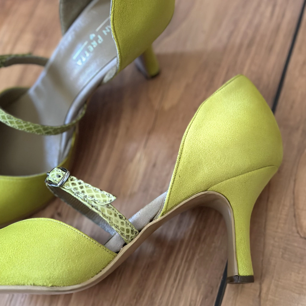 Presentamos el Stiletto Meghan, la fusión perfecta entre tendencia y clasicismo. Este modelo destaca por su escote en la capellada, que estiliza el calce, brindando un toque de elegancia a cualquier outfit. Ideal para aquellas que desean lucir sofisticadas sin sacrificar la comodidad.