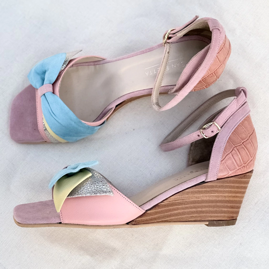 Hay zapatos que acompañan, y otros que transforman. Este taco chino combina un mix de colores, texturas y un medio moño que aporta ese toque glam que nunca pasa desapercibido. Tan cómodo como distintivo, hecho para brillar sin esfuerzo.