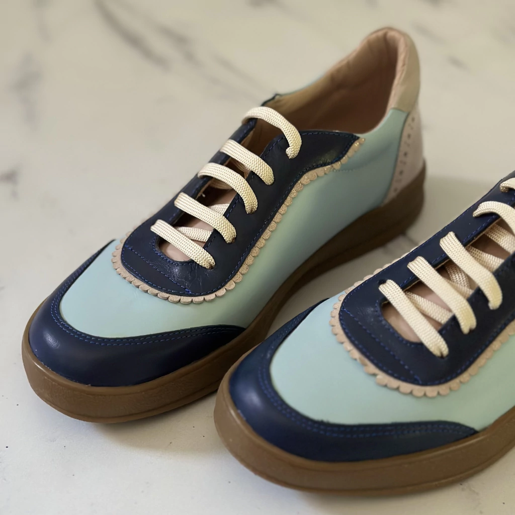 Sara es esa zapatilla que no pasa desapercibida: combina tonos vibrantes y texturas inesperadas con un aplique de perlas desmontable que le pone poesía al movimiento.